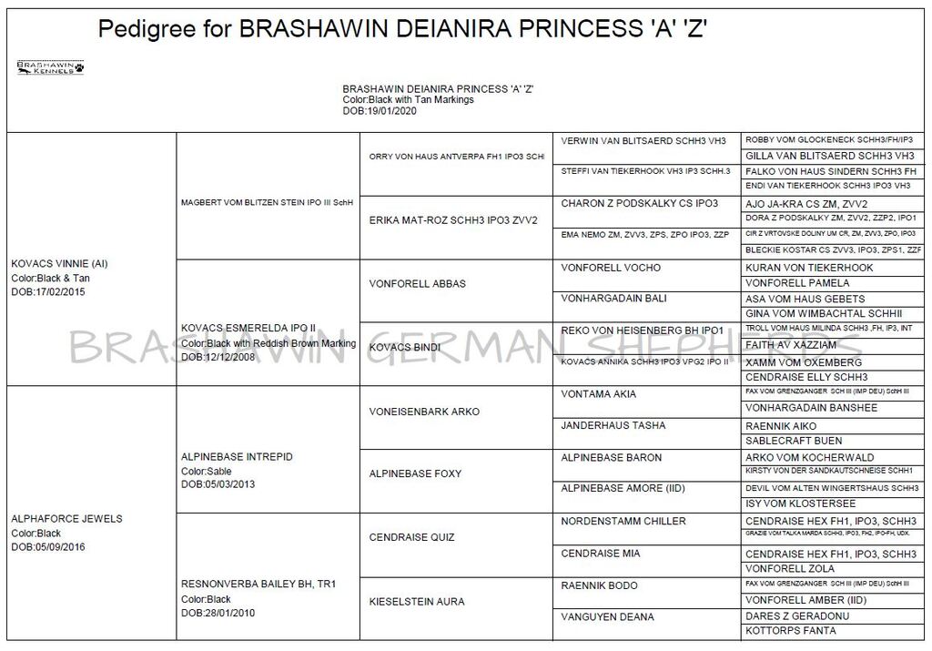 Her pedigree is enriched with some of the most respected names in German Shepherd breeding. Notably, she carries 5:5 linebreeding to Fax vom Grenzgänger and 5:5 to Cendraise Hex - reinforcing those foundational influences in her genotype.