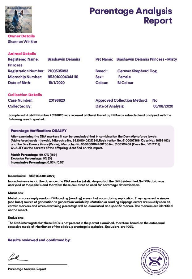 Beyond those two, Misty’s heritage includes bloodlines connected to Reko vom Heisenberg, Von Forell Vocho, Magbert vom Blitzen Stein, and Asa vom Haus Gebets - each contributing their own lineage of performance, type, and working temperament. These ancestral lines bring in layers of stamina, drive, presence, and working ability, enriching Misty’s genetic foundation.