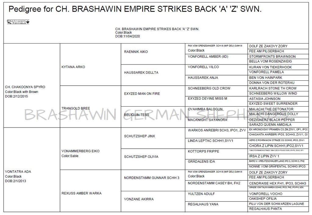 Vader’s pedigree is rich with some of the most respected and influential bloodlines in the breed. He is linebred on Fax vom Grenzgänger (4–4), a dog celebrated for his power, pigment, and exceptional working ability, and carries within his lineage names such as Cendraise Hex, Vonforell Amber, Vonforell Vocho, Vonforell Vilco, Nordenstamm Gunnar, and Warkos Anrebri (Imp. CZE). Each of these dogs has contributed to Vader’s outstanding balance of structure, temperament, and intelligence.